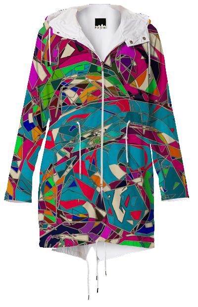 Light weight water resistant raincoat meant for easy layering in all sorts of rainy climates. Features waist & bottom hem drawstrings for definition and a double snap hood to protect against wind & rain.