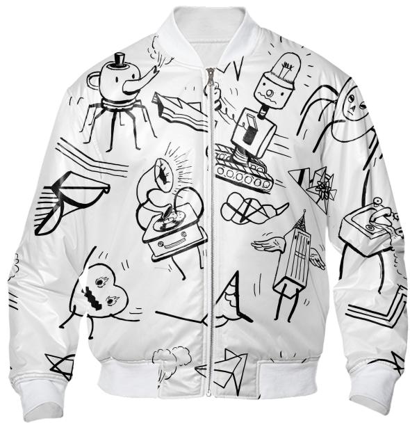 Light weight bombr jacket with your choice of white or black ribbing slight padding zip up front and side pockets. The inside is adorned with PAOM straps for swinging over your shoulders so you dont have to hold it.