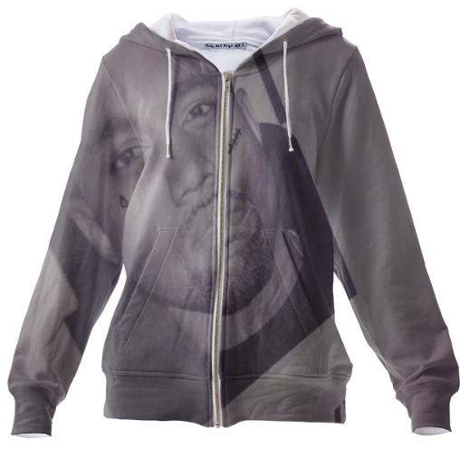 Slim fitting zip up hoodie with front kangaroo pockets metal zipper and drawstring hood.