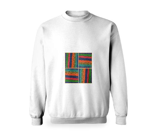 Basic crew neck sweatshirt with made with soft recycled polyester sweatshirt fabric. Features printed neck arm and bottom cuffs.