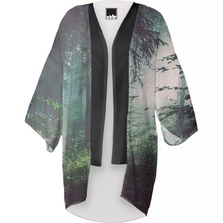 Flowy chiffon kimono falls nicely at mid thigh. Great for layering or using as a beach cover up.