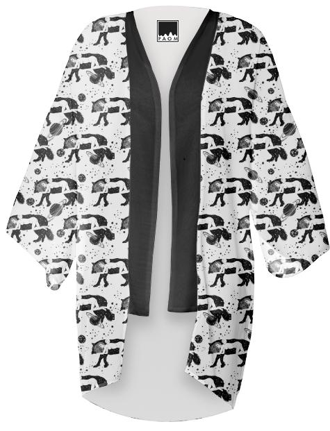 Flowy chiffon kimono falls nicely at mid thigh. Great for layering or using as a beach cover up.