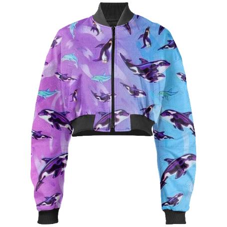 Designed by Gabriel Held this neoprene bomber jacket has a cropped fit with raglan sleeves a zip up front and two welt pockets. Matches with the Gabriel Held Mini Zip Skirt.