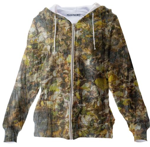 Slim fitting zip up hoodie with front kangaroo pockets metal zipper and drawstring hood.