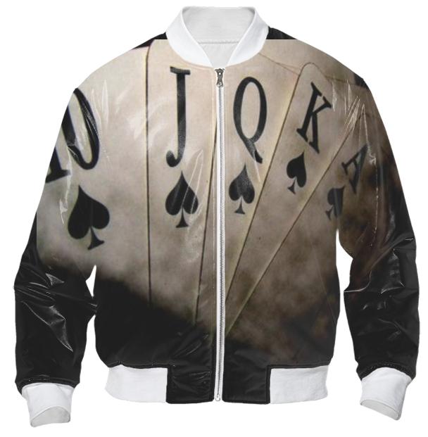 Light weight bombr jacket with your choice of white or black ribbing slight padding zip up front and side pockets. The inside is adorned with PAOM straps for swinging over your shoulders so you dont have to hold it.