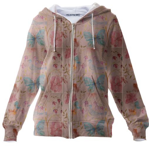 Slim fitting zip up hoodie with front kangaroo pockets metal zipper and drawstring hood.