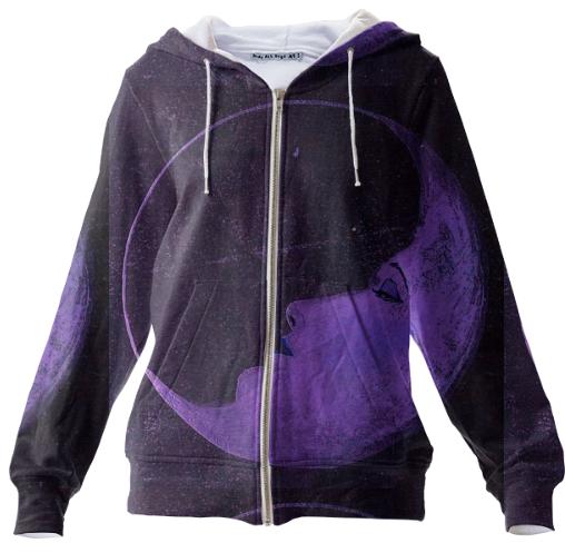 Slim fitting zip up hoodie with front kangaroo pockets metal zipper and drawstring hood.