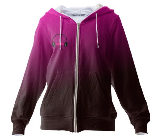 Slim fitting zip up hoodie with front kangaroo pockets metal zipper and drawstring hood.