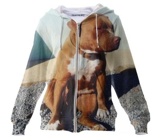 Slim fitting zip up hoodie with front kangaroo pockets metal zipper and drawstring hood.