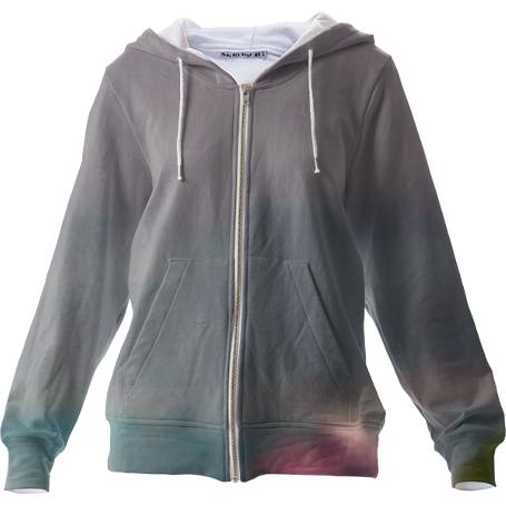 Slim fitting zip up hoodie with front kangaroo pockets metal zipper and drawstring hood.