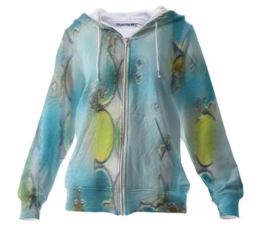 Slim fitting zip up hoodie with front kangaroo pockets metal zipper and drawstring hood.