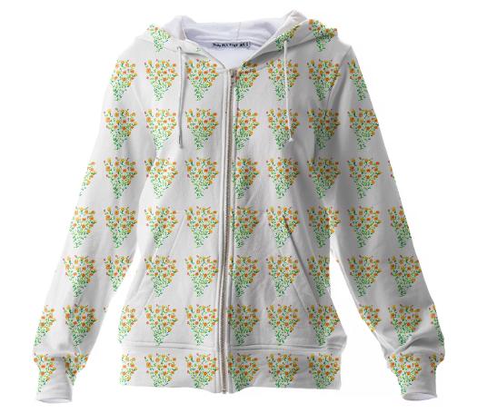 Slim fitting zip up hoodie with front kangaroo pockets metal zipper and drawstring hood.