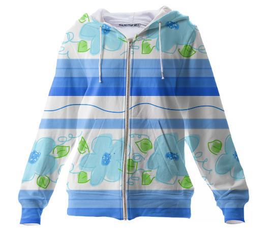 Slim fitting zip up hoodie with front kangaroo pockets metal zipper and drawstring hood.