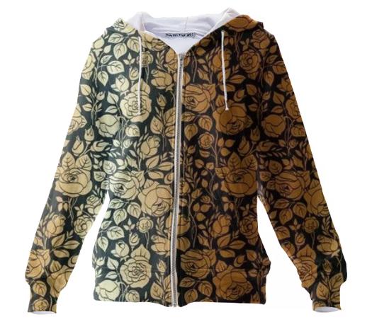 Slim fitting zip up hoodie with front kangaroo pockets metal zipper and drawstring hood.