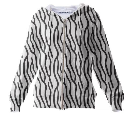 Slim fitting zip up hoodie with front kangaroo pockets metal zipper and drawstring hood.