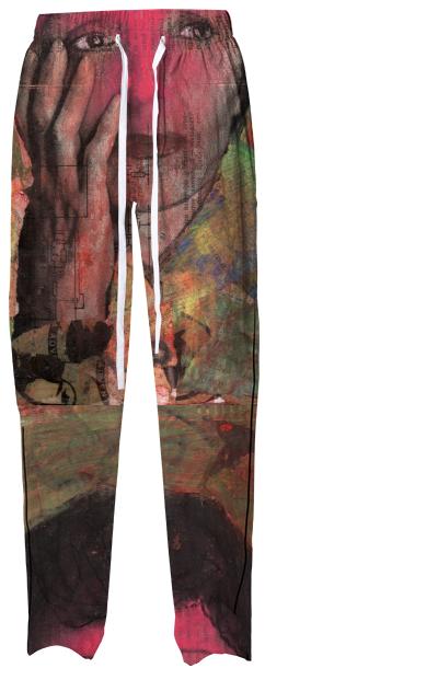 Classic pajama bottom with drawstring elastic waistband and black side seam piping. Matches the pajama top.