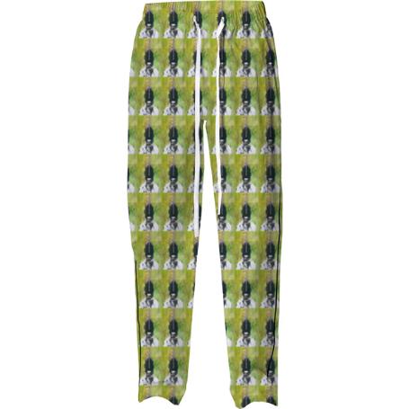 Classic pajama bottom with drawstring elastic waistband and black side seam piping. Matches the pajama top.