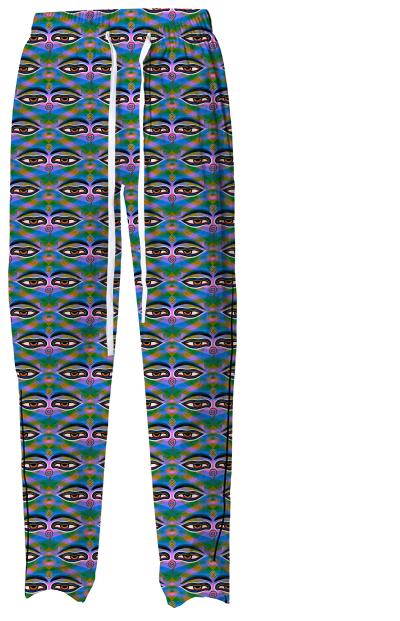 Classic pajama bottom with drawstring elastic waistband and black side seam piping. Matches the pajama top.