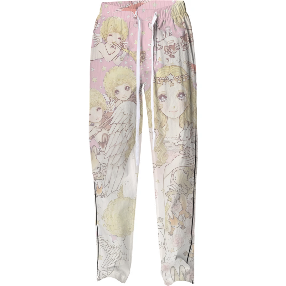 Classic pajama bottom with drawstring elastic waistband and black side seam piping. Matches the pajama top.