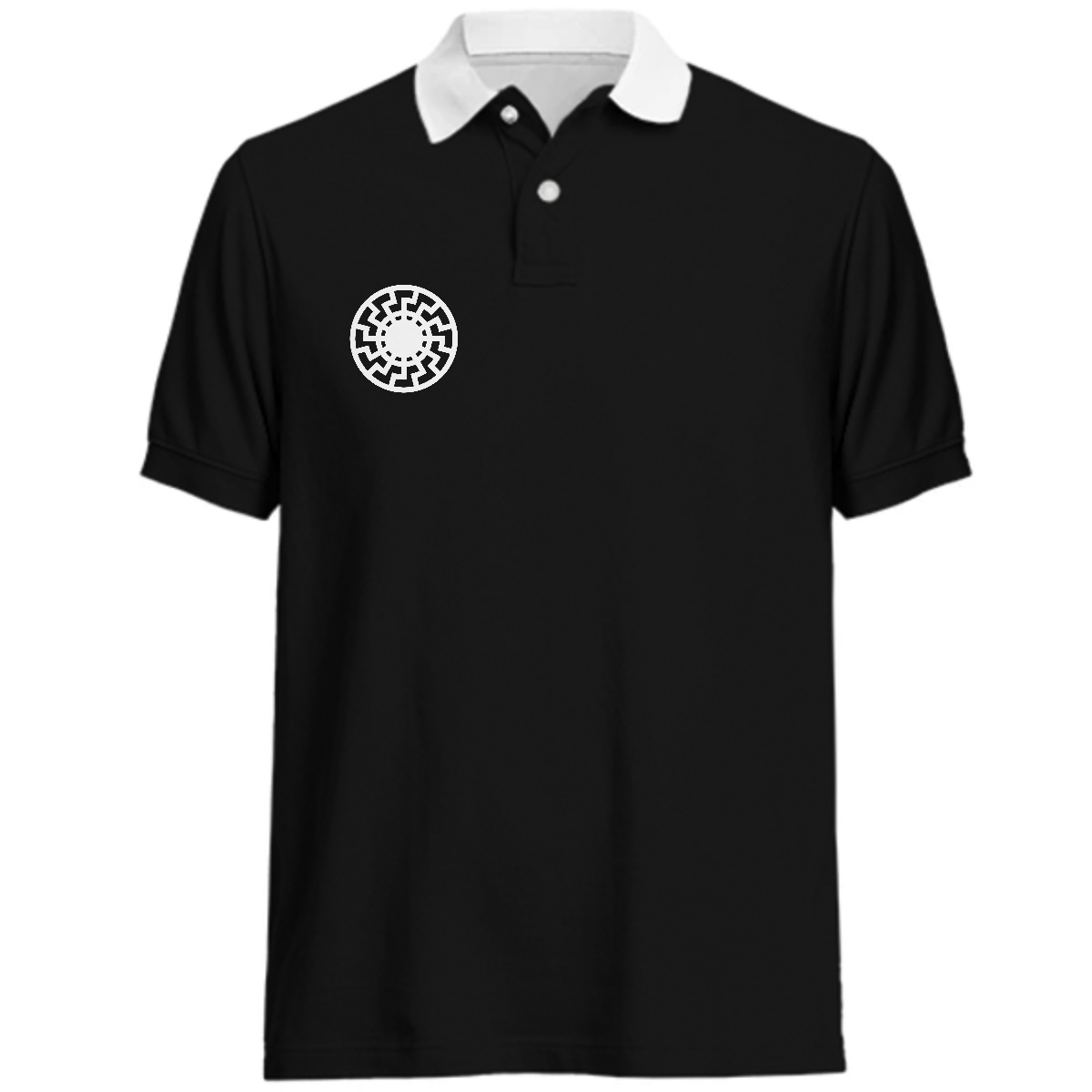 Tall fitting cotton pique polo shirt featuring a white knit collar and plastic buttons.