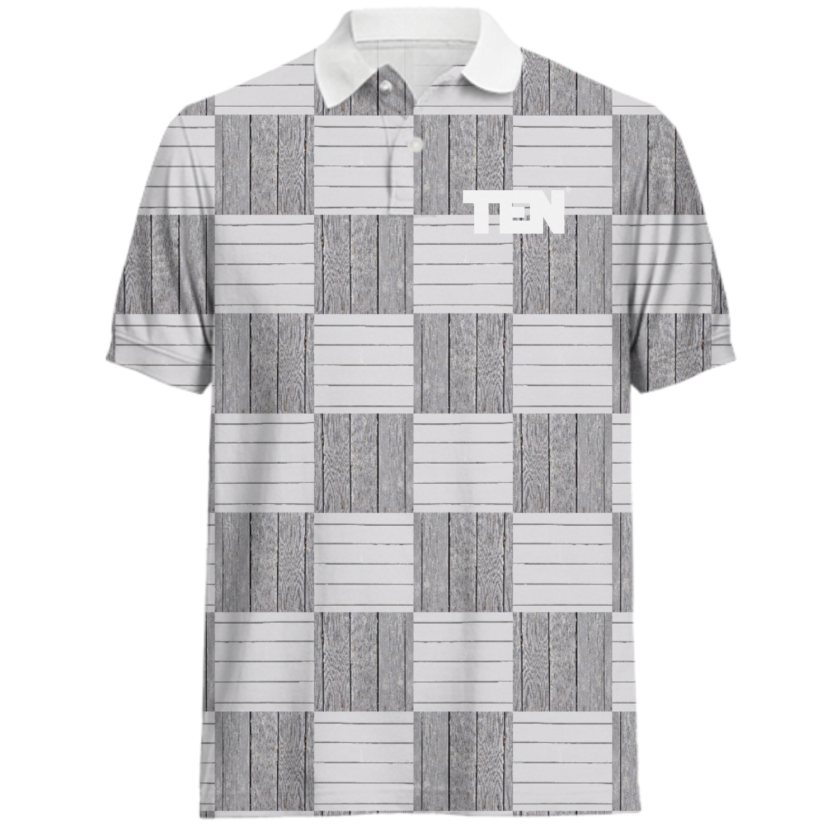 Tall fitting cotton pique polo shirt featuring a white knit collar and plastic buttons.