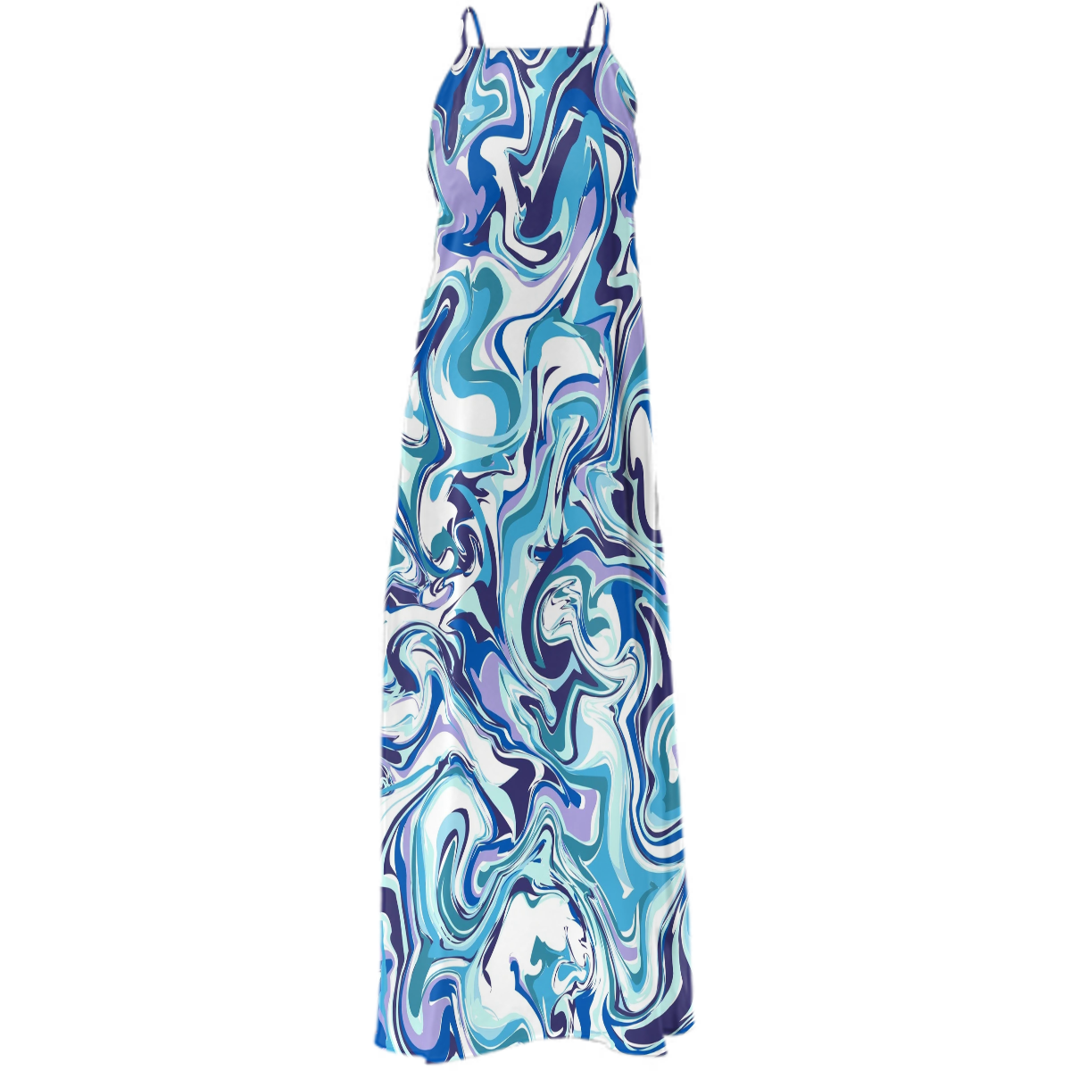 Ankle length maxi dress with cross back adjustable spaghetti straps and a square neckline.