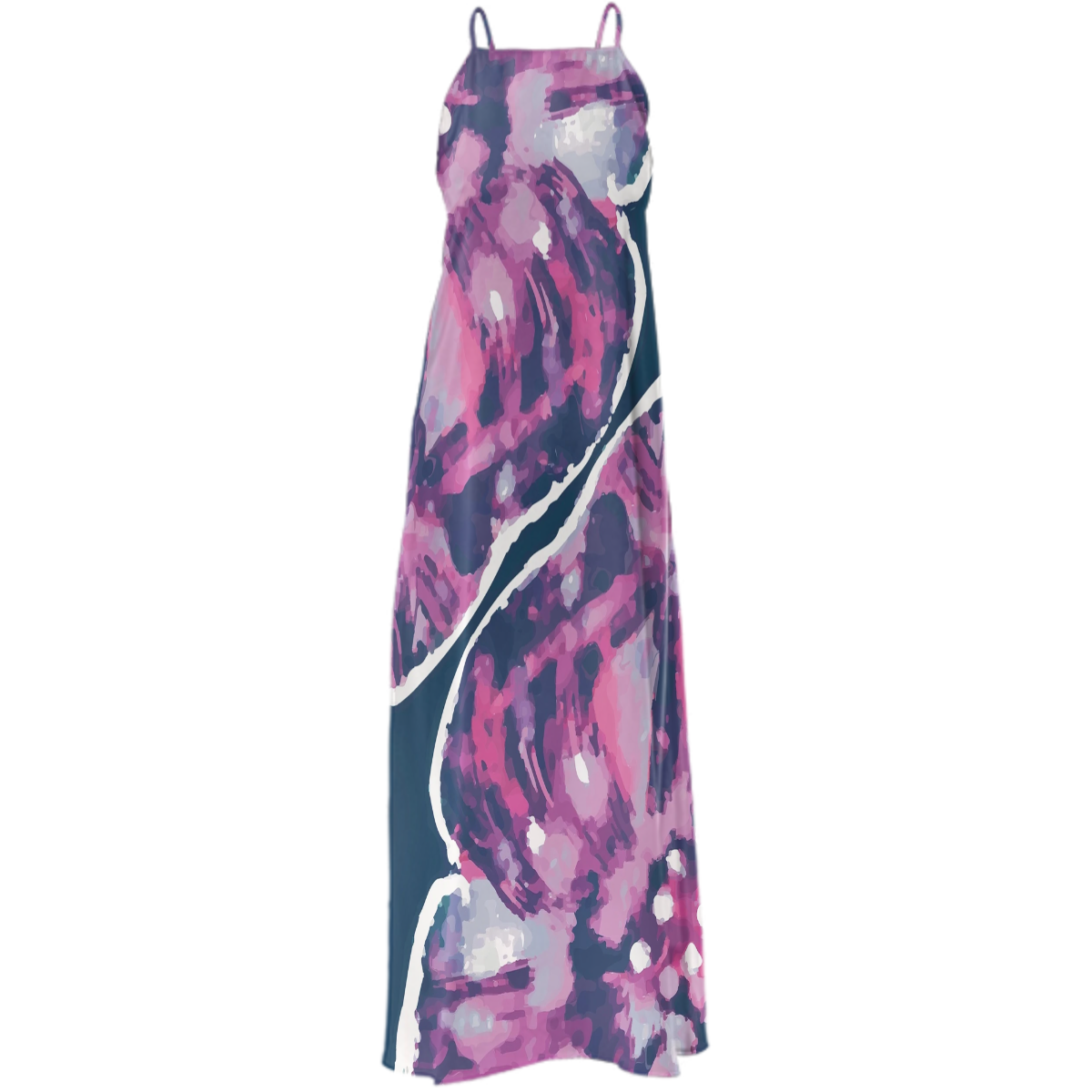 Ankle length maxi dress with cross back adjustable spaghetti straps and a square neckline.