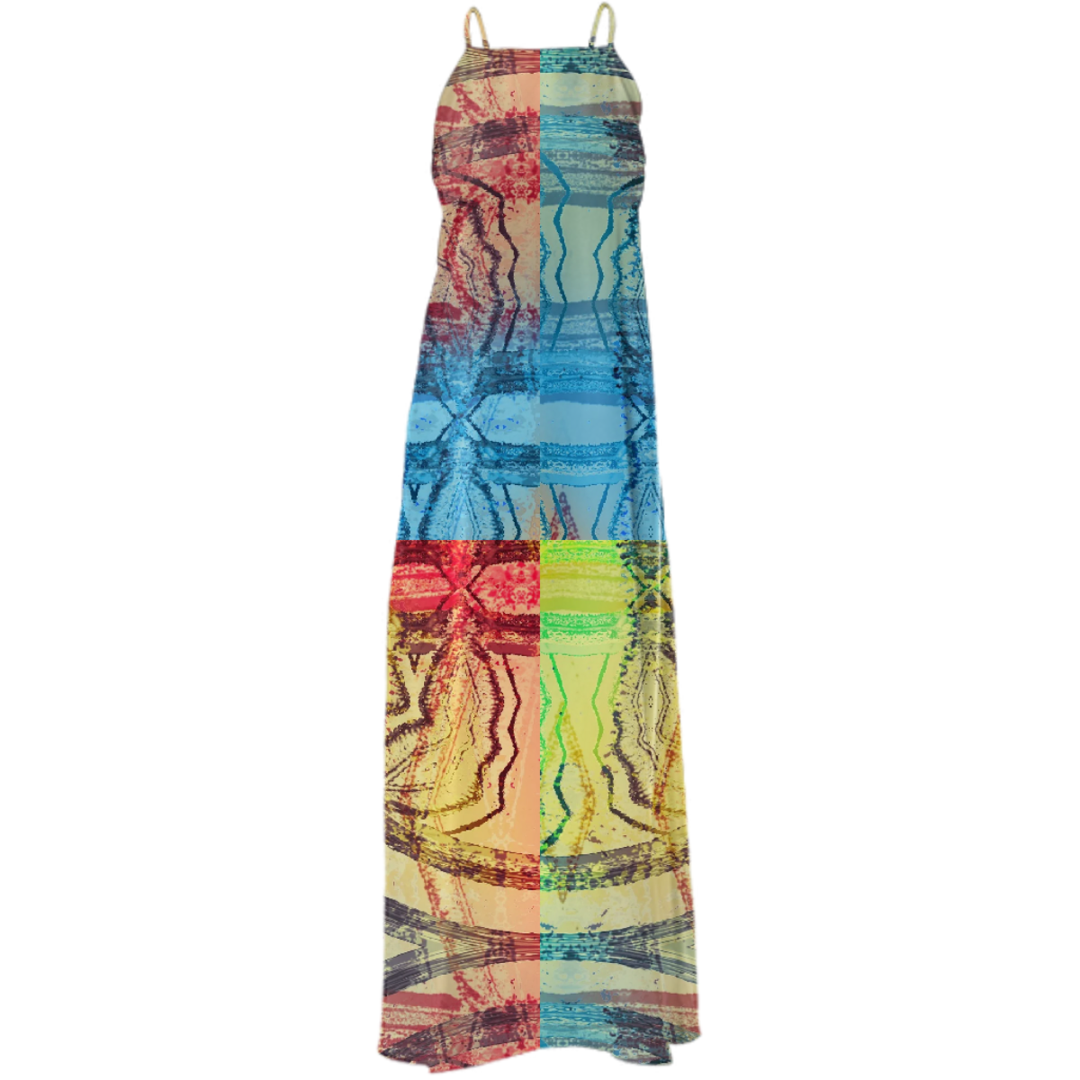 Ankle length maxi dress with cross back adjustable spaghetti straps and a square neckline.