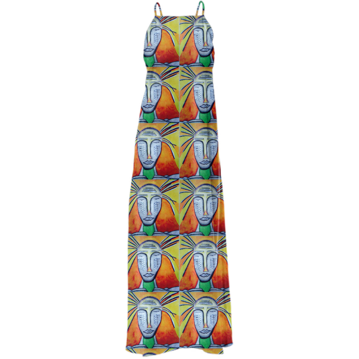 Ankle length maxi dress with cross back adjustable spaghetti straps and a square neckline.