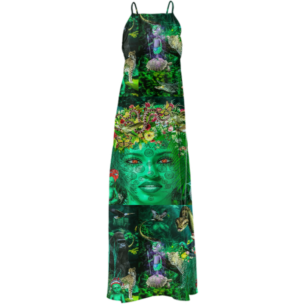 Ankle length maxi dress with cross back adjustable spaghetti straps and a square neckline.