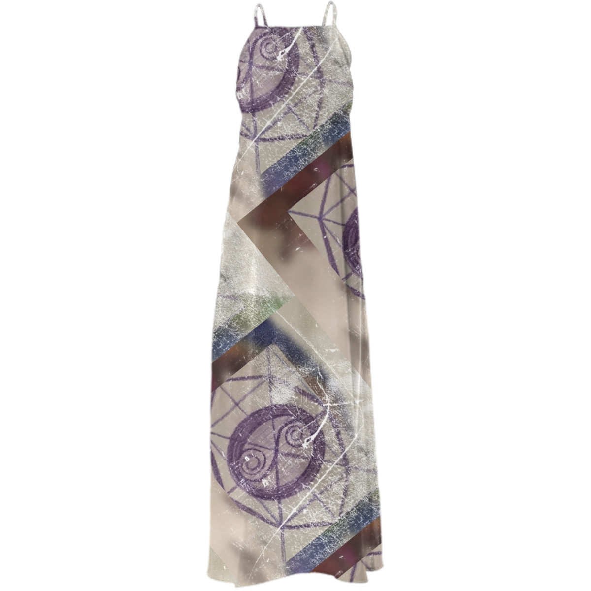 Ankle length maxi dress with cross back adjustable spaghetti straps and a square neckline.