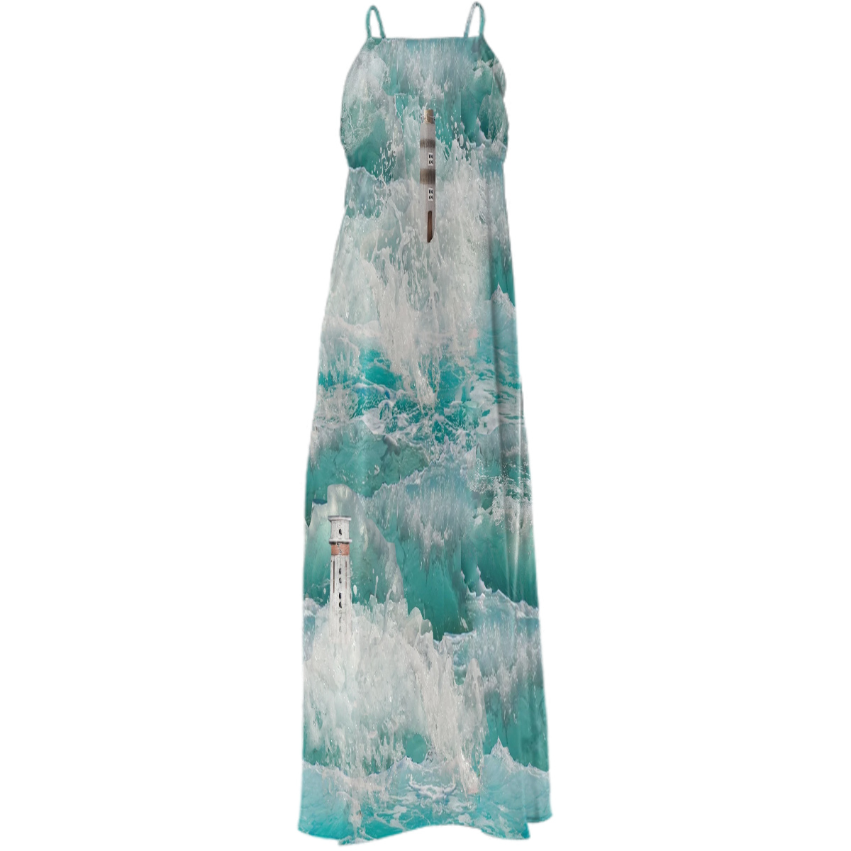Ankle length maxi dress with cross back adjustable spaghetti straps and a square neckline.