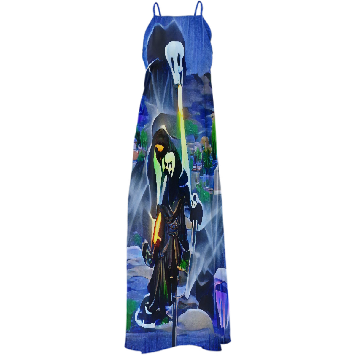 Ankle length maxi dress with cross back adjustable spaghetti straps and a square neckline.