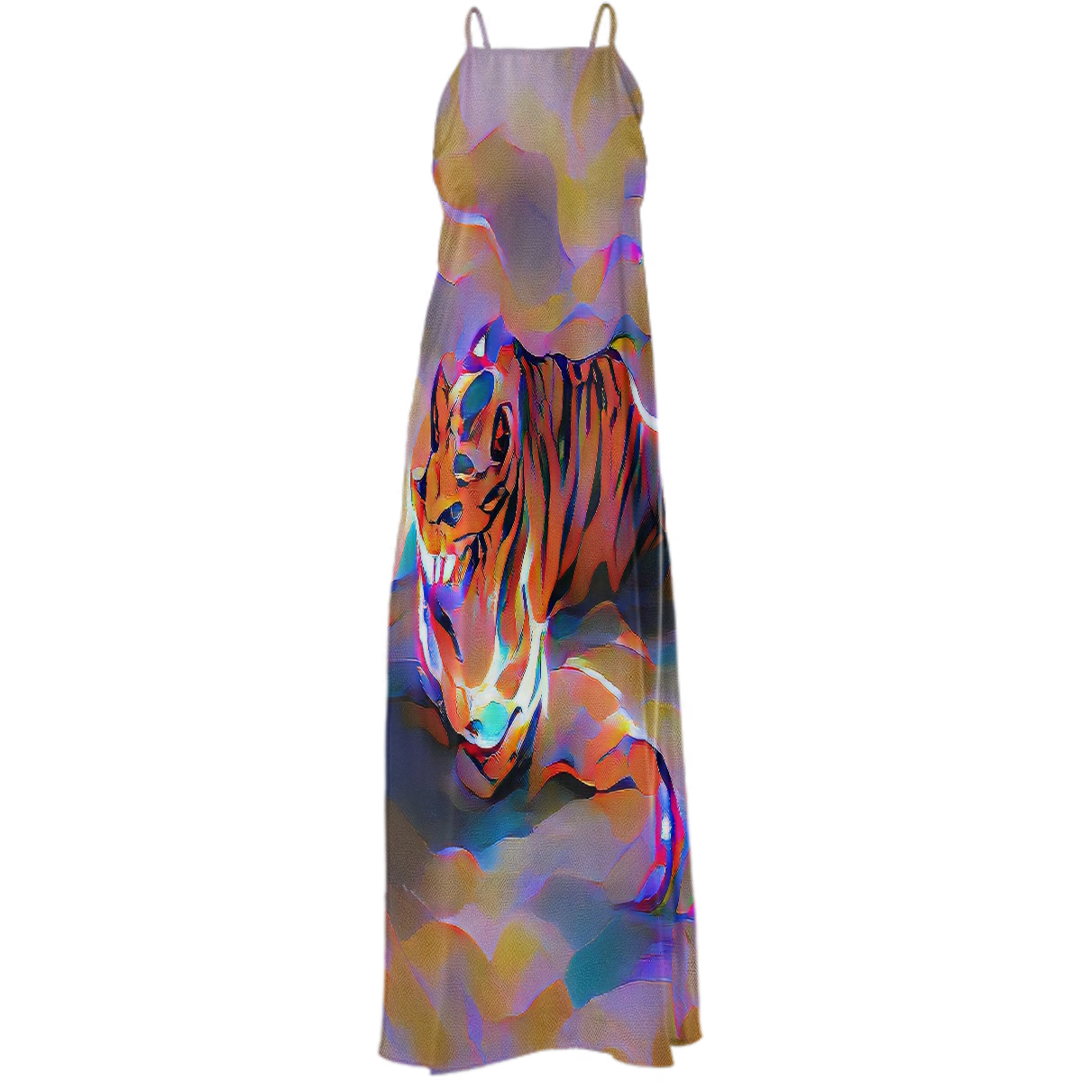 Ankle length maxi dress with cross back adjustable spaghetti straps and a square neckline.