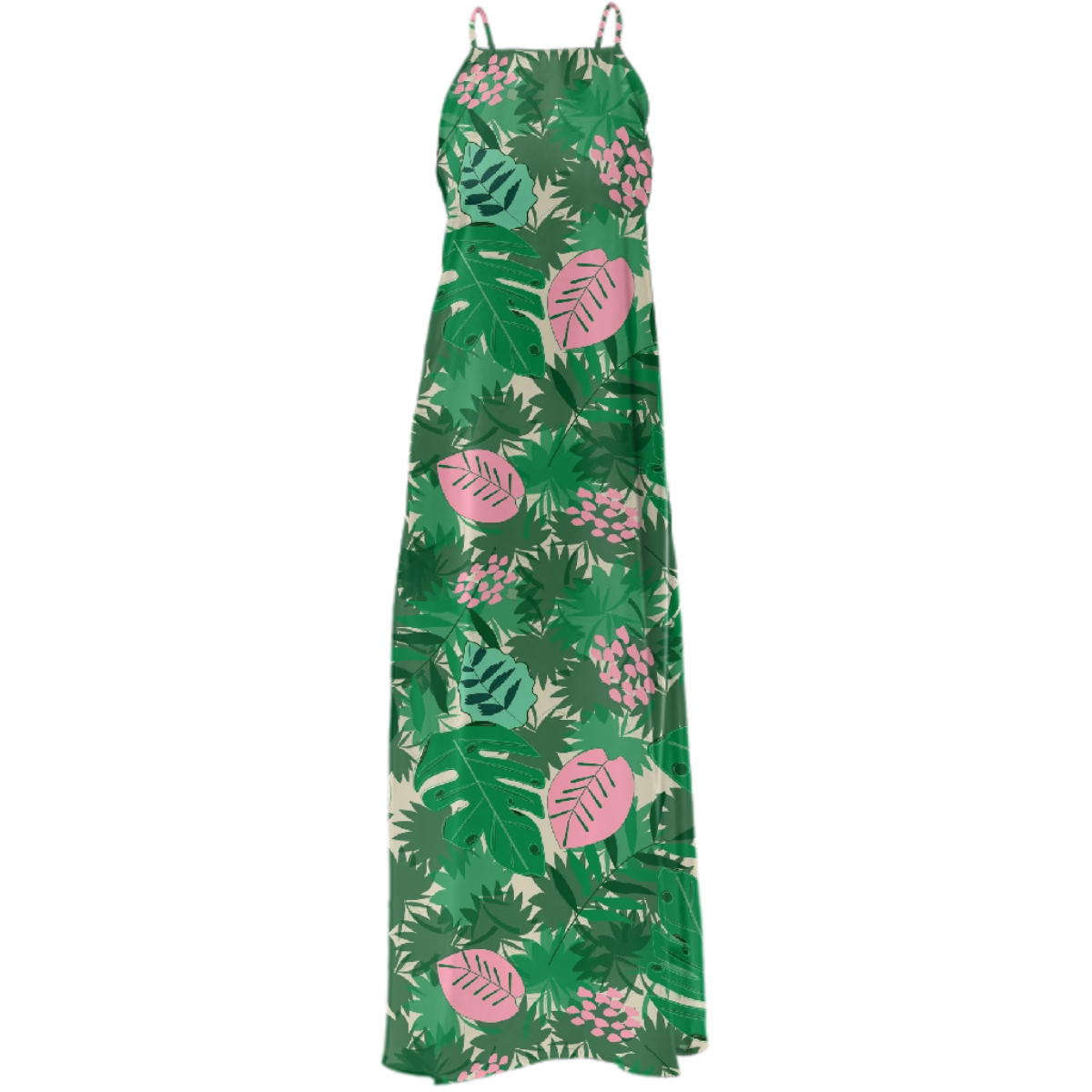 Ankle length maxi dress with cross back adjustable spaghetti straps and a square neckline.