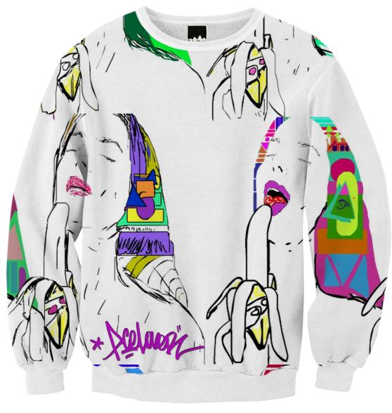Our basic crew neck sweatshirt fit with unprinted black or white cotton ribbing on the neck cuffs and waistband.