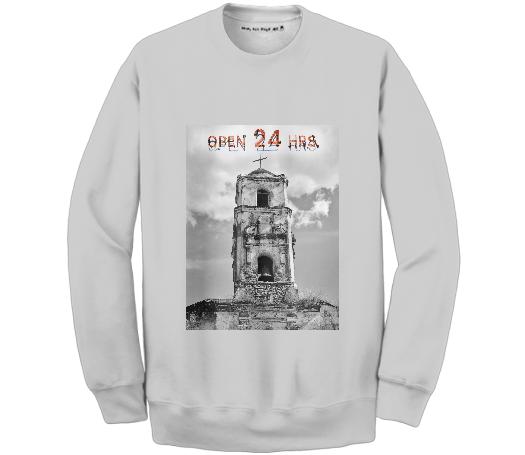 Our basic crew neck sweatshirt fit with unprinted black or white cotton ribbing on the neck cuffs and waistband.