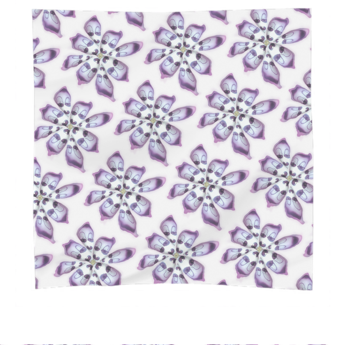 36 by 36 inch square scarf made with light rayon for a nice drape.
