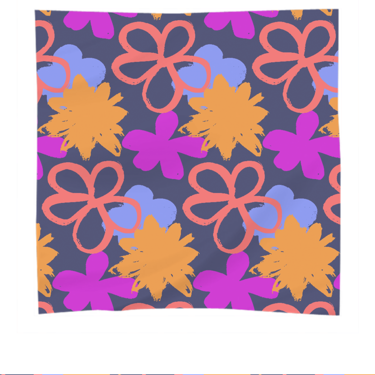 36 by 36 inch square scarf made with light rayon for a nice drape.