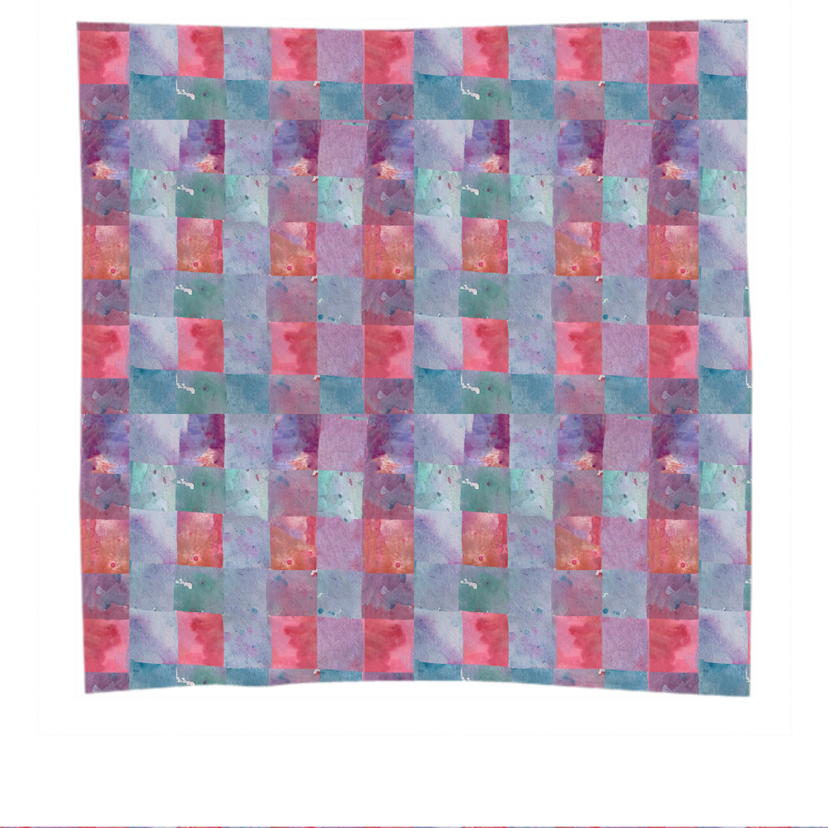 36 by 36 inch square scarf made with light rayon for a nice drape.