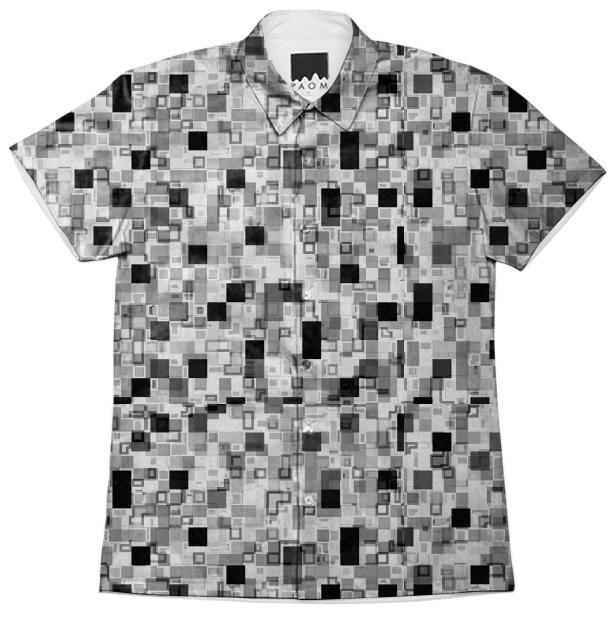 Short sleeve mens button down with spread shirt collar.