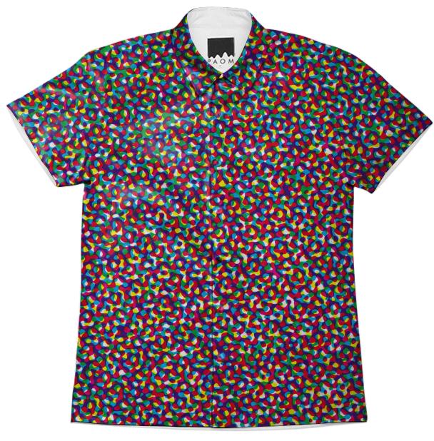 Short sleeve mens button down with spread shirt collar.