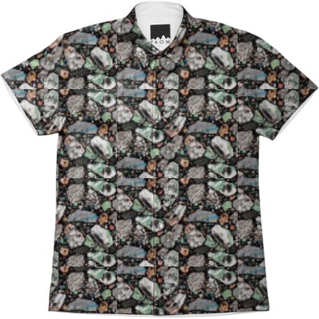 Short sleeve mens button down with spread shirt collar.