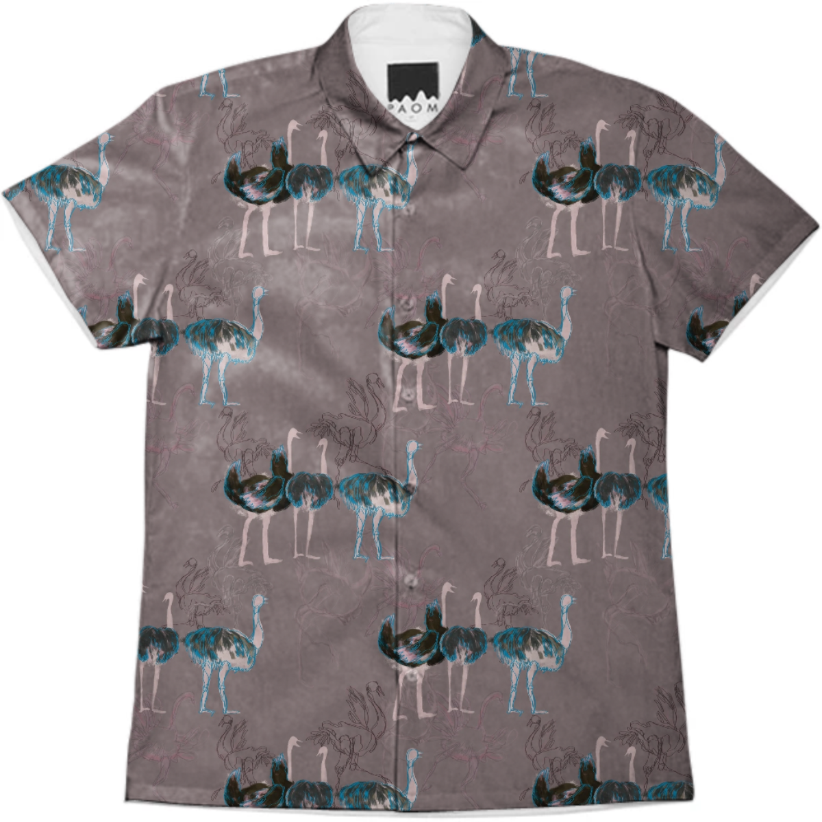 Short sleeve mens button down with spread shirt collar.