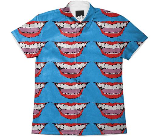 Short sleeve mens button down with spread shirt collar.