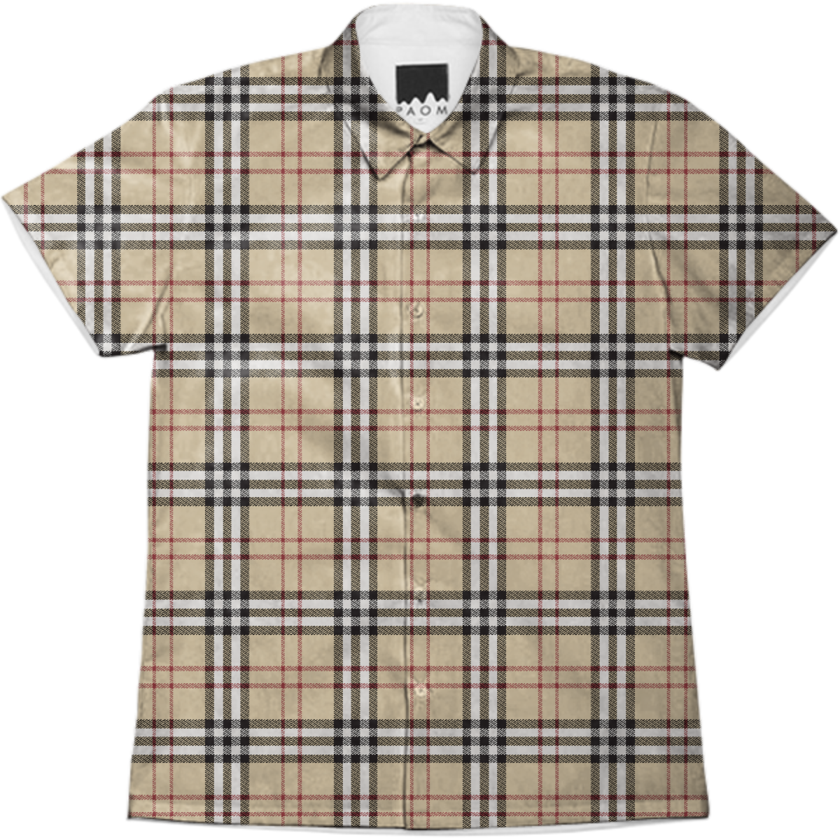 Short sleeve mens button down with spread shirt collar.