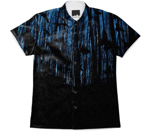 Short sleeve mens button down with spread shirt collar.
