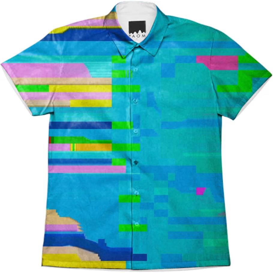 Short sleeve mens button down with spread shirt collar.