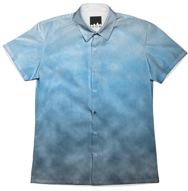 Short sleeve mens button down with spread shirt collar.