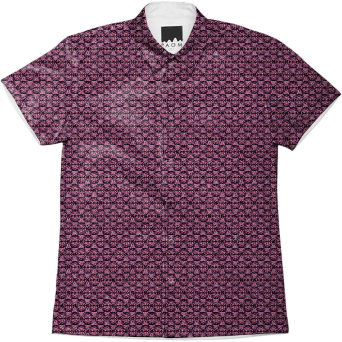 Short sleeve mens button down with spread shirt collar.